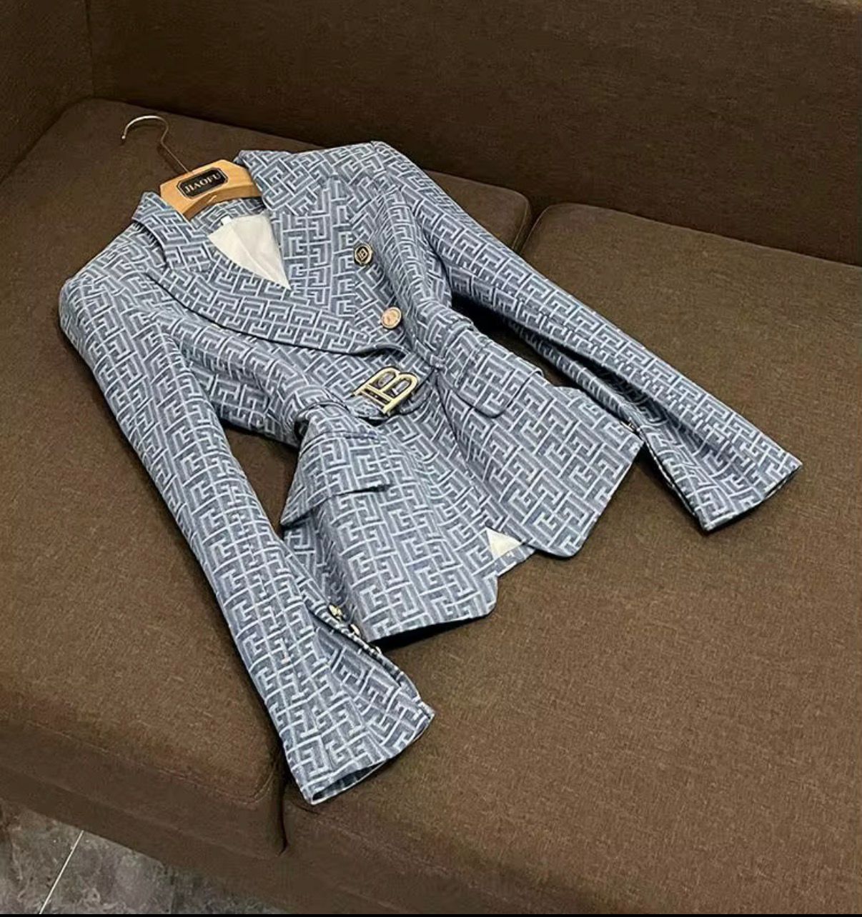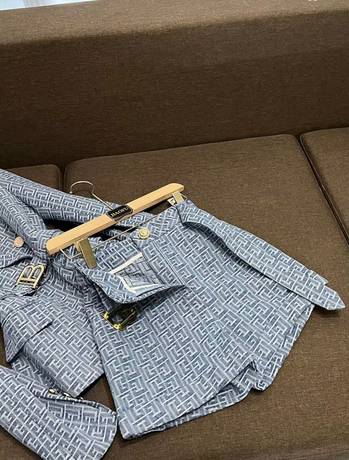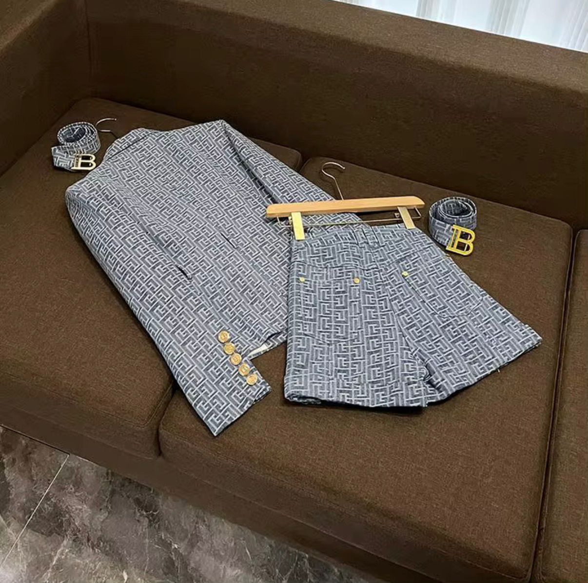 - Detaliu deosebit: Pantalonii scurți, asortați ca material și culoare cu sacoul, creează un contrast interesant între formal și relaxat.