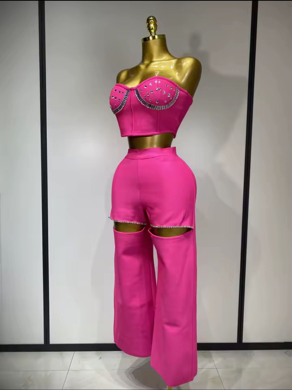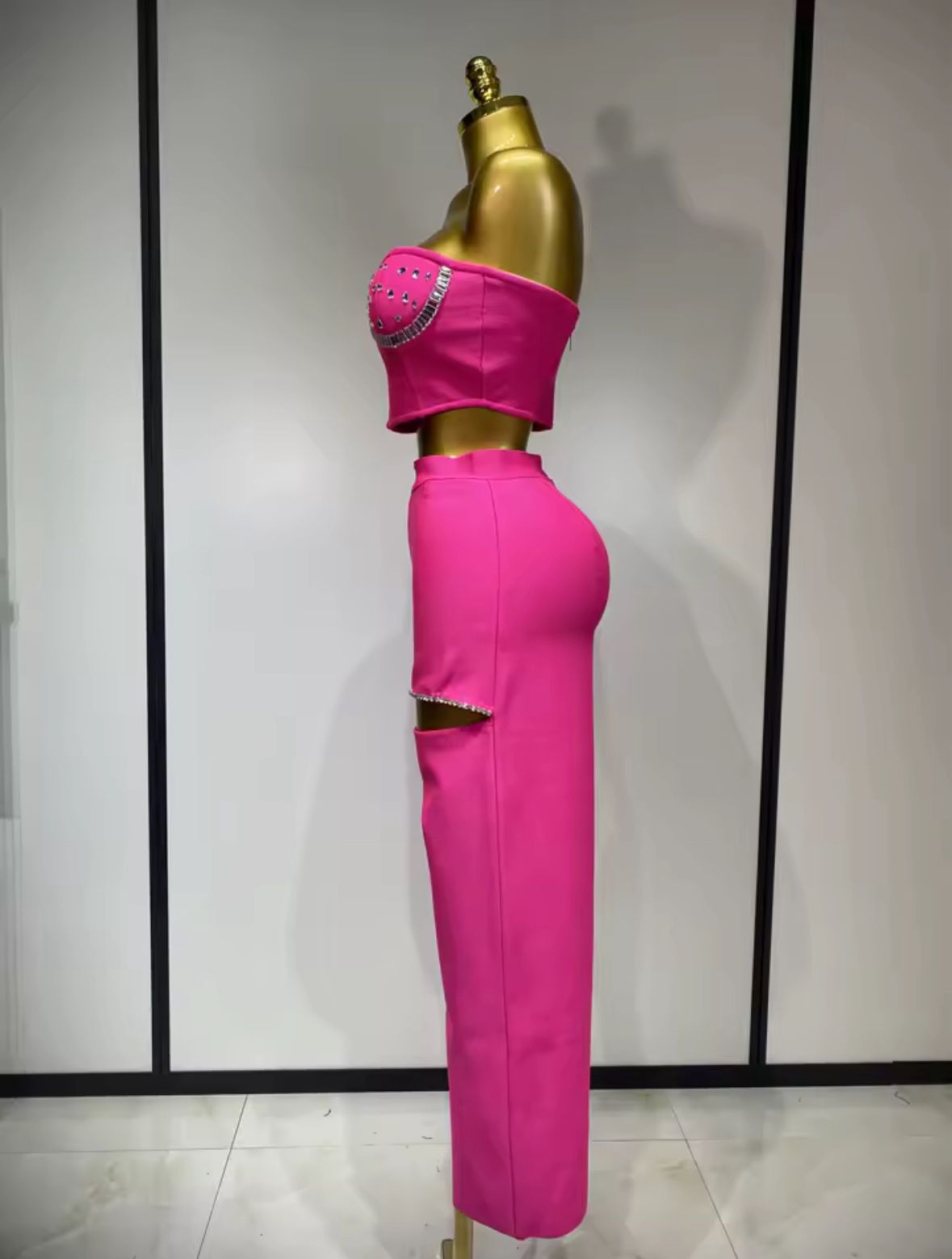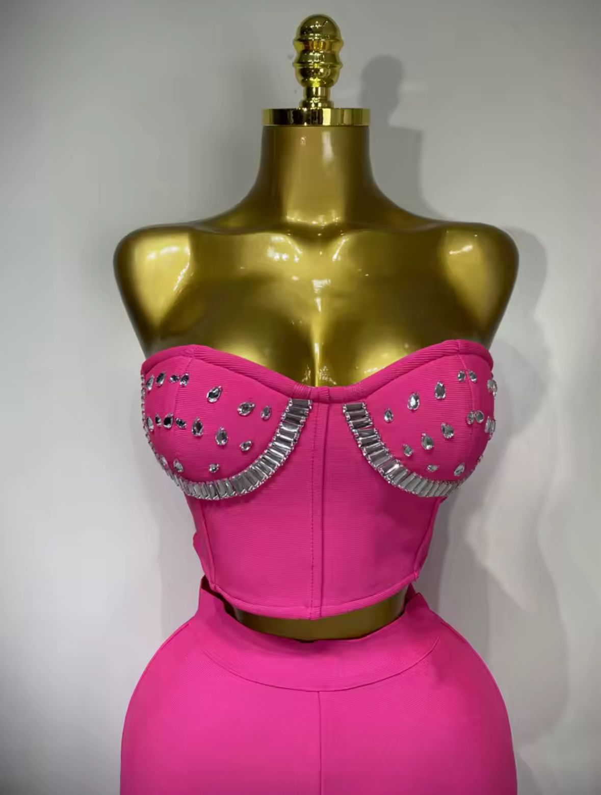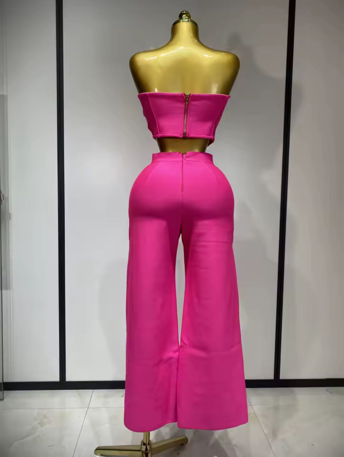 - Stil unicat: Compleul are un design care pune în evidență talia și umerii datorită topului scurt și fără bretele, fiind ideal pentru ieșiri la evenimente speciale, petreceri sau orice zi importantă.