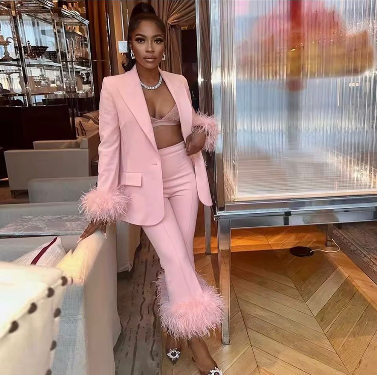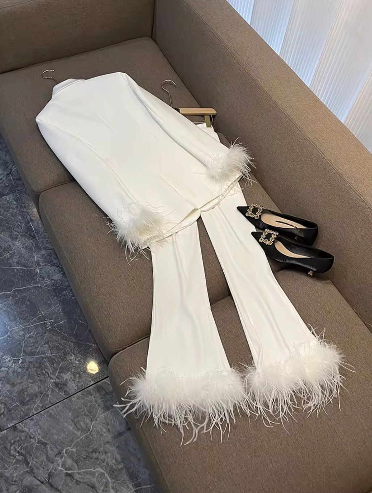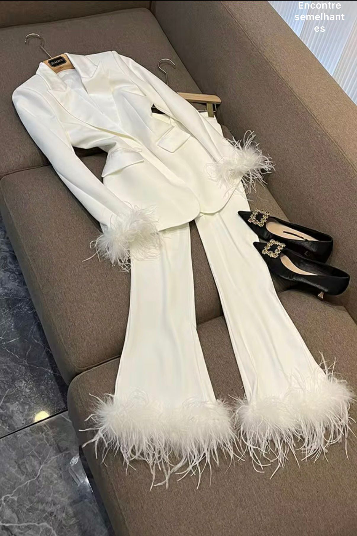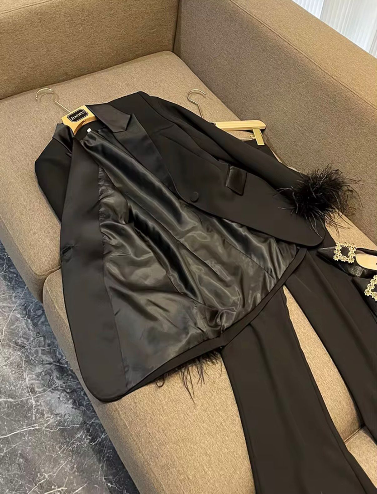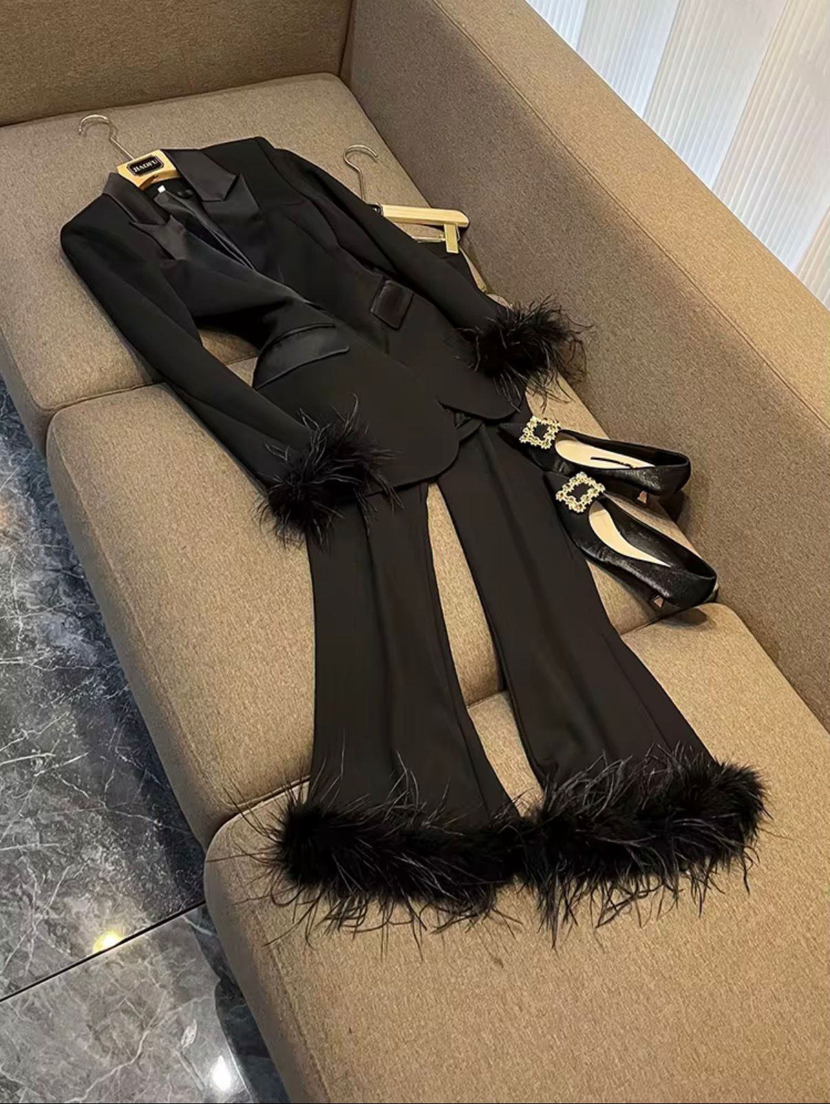 - Detaliu deosebit: Pantalonii evazați cu puf adaugă un plus de feminitate și rafinament, accentuând frumusețea naturală a oricărei femei.