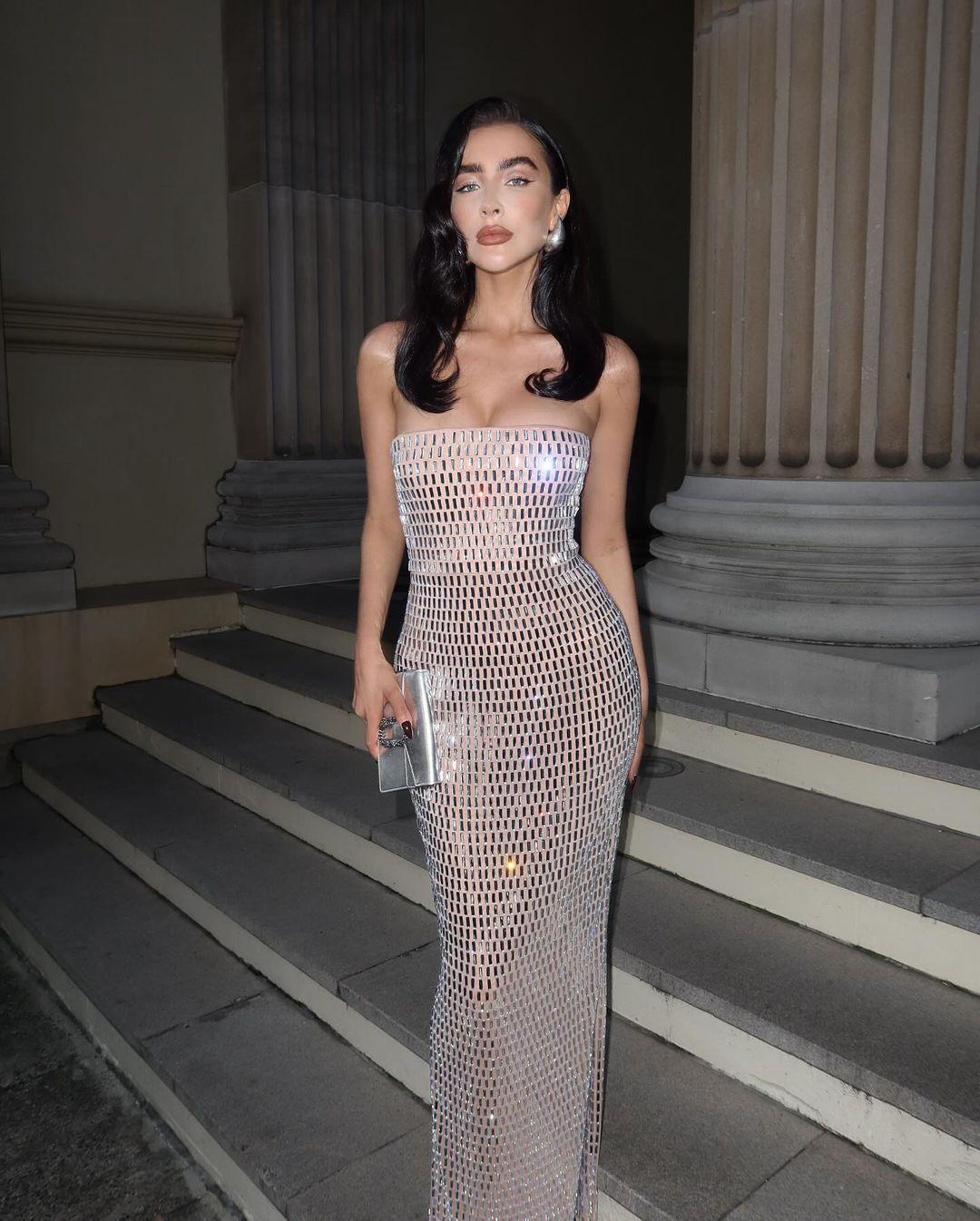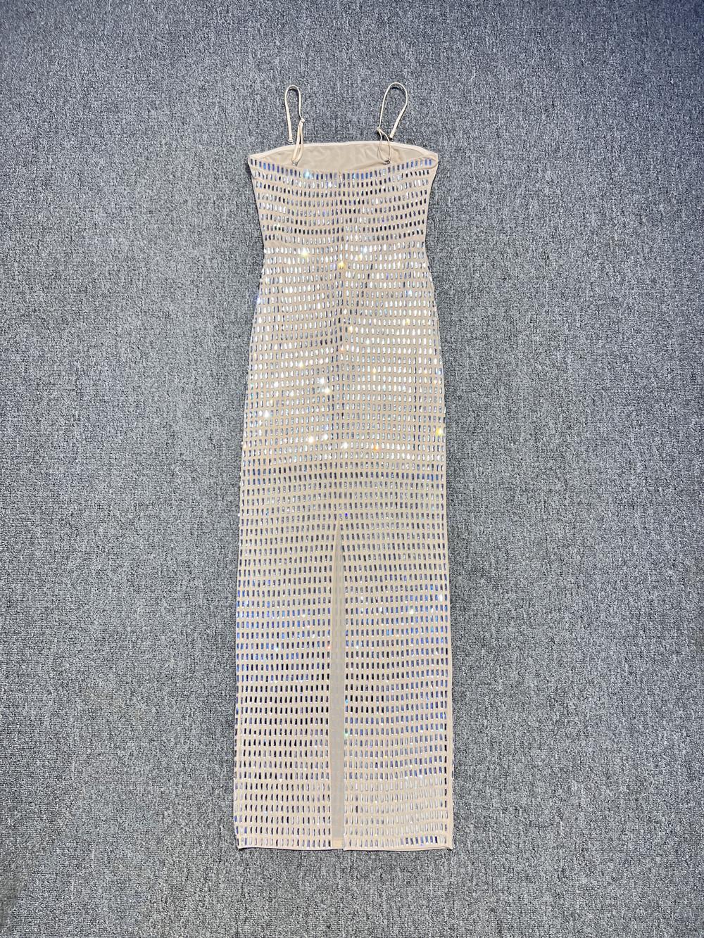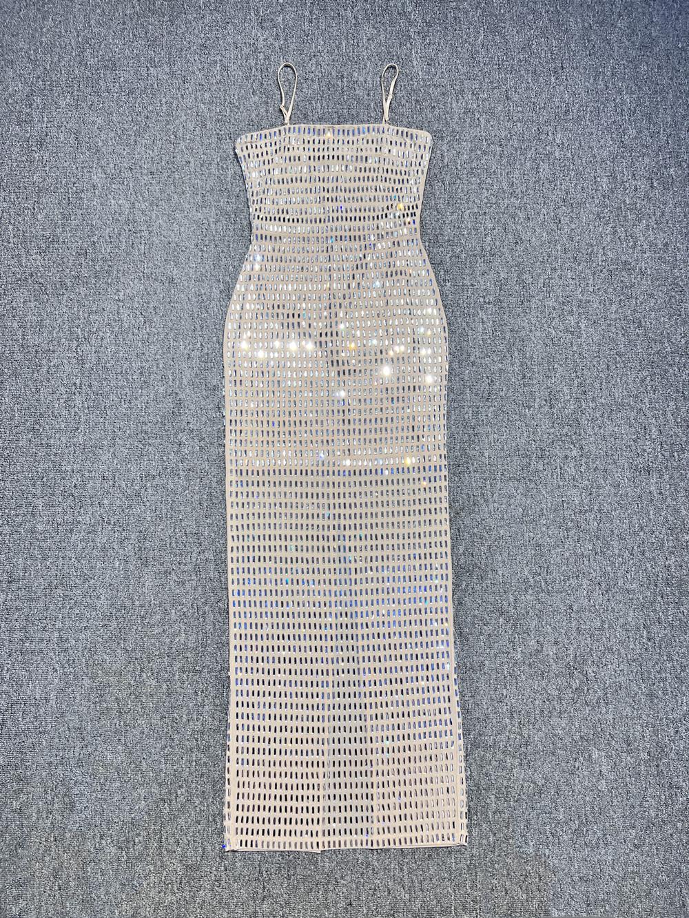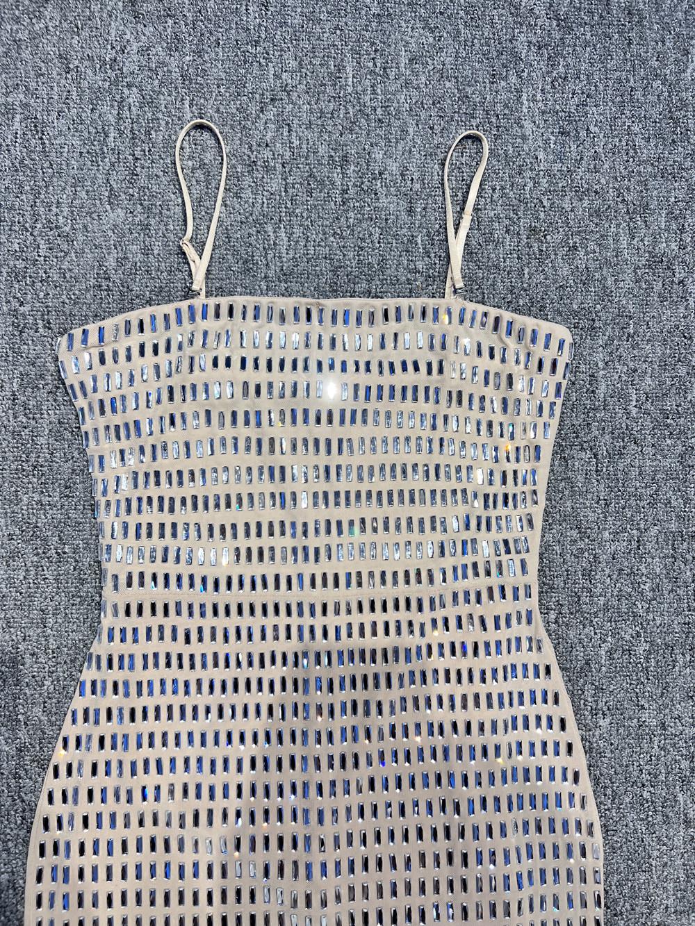 - Detaliu deosebit: Întreaga rochie este decorată cu diamante strălucitoare, decorații ce adaugă un plus de feminitate și rafinament, accentuând frumusețea naturală a oricărei femei.