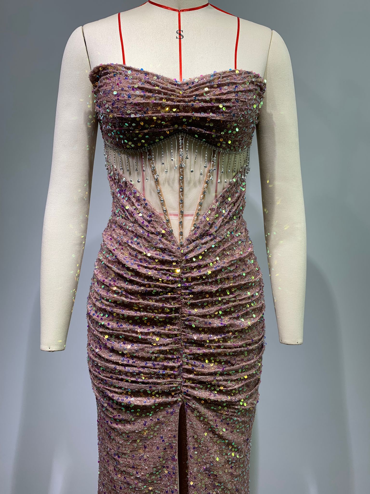 - Detaliu deosebit: Fanta frontală și paieteloe strălucitoare adaugă un plus de feminitate și rafinament, accentuând frumusețea naturală a oricărei femei.