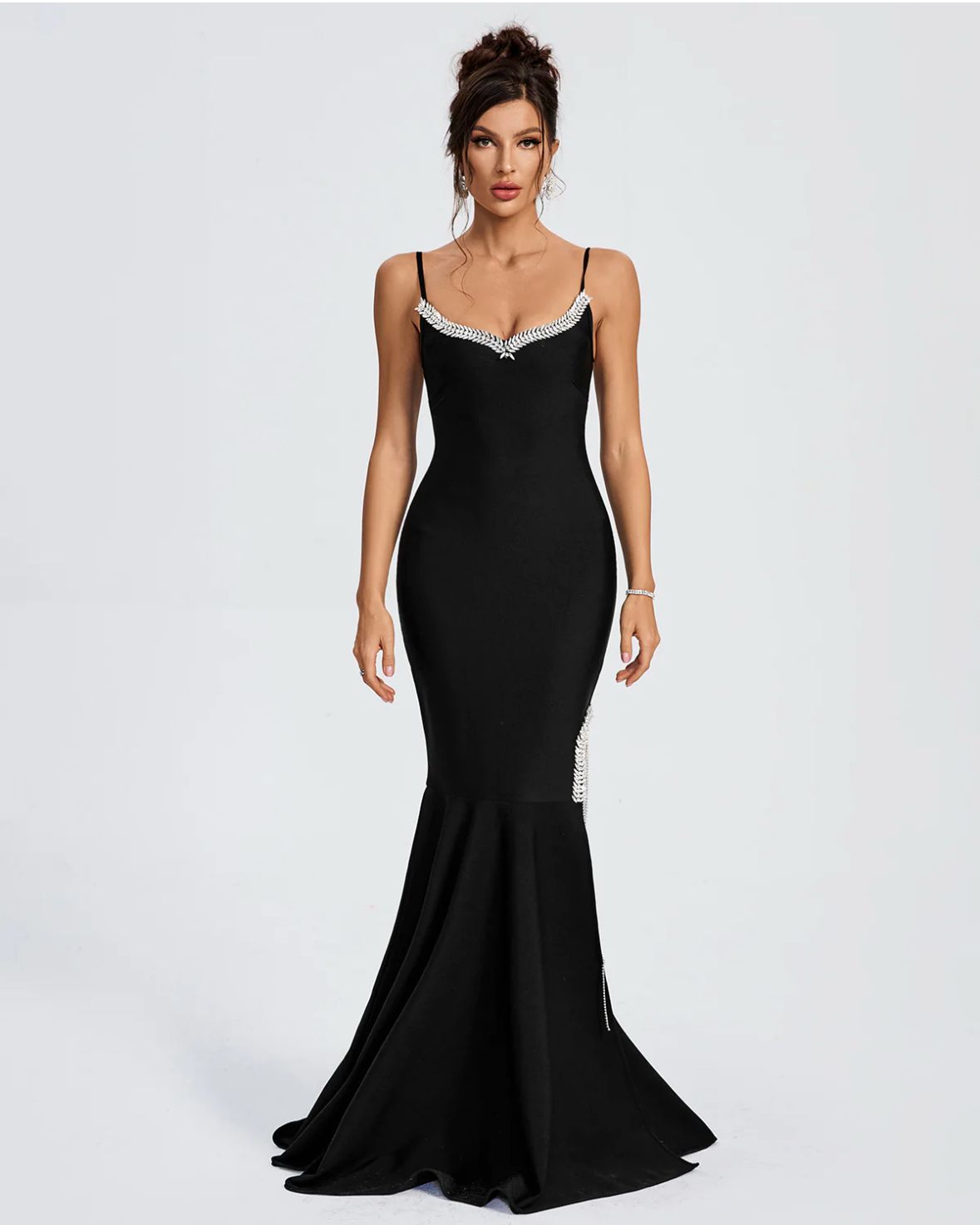 - Detaliu deosebit: Fusta stil sirenă cu fanta laterală decorată cu ștrasuri argintii adaugă un plus de feminitate și rafinament, accentuând frumusețea naturală a oricărei femei.