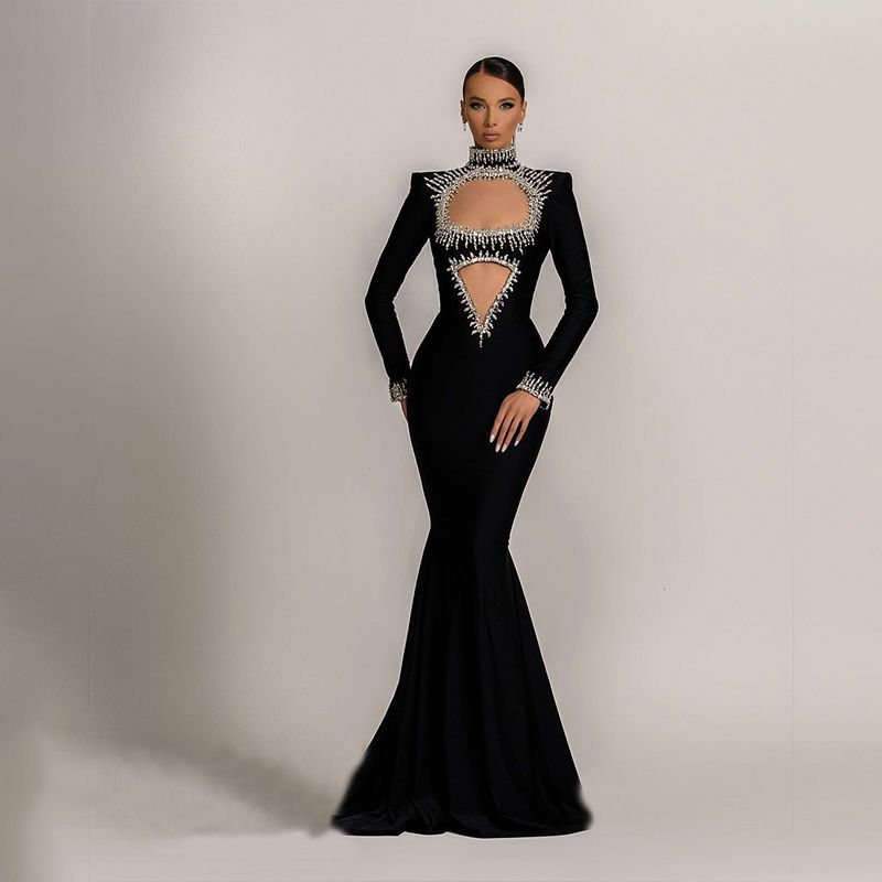 Această rochie de ocazii neagră, cu un design luxuriant și sofisticat, este o alegere deosebită pentru evenimentele speciale unde eleganța și farmecul sunt esențiale.