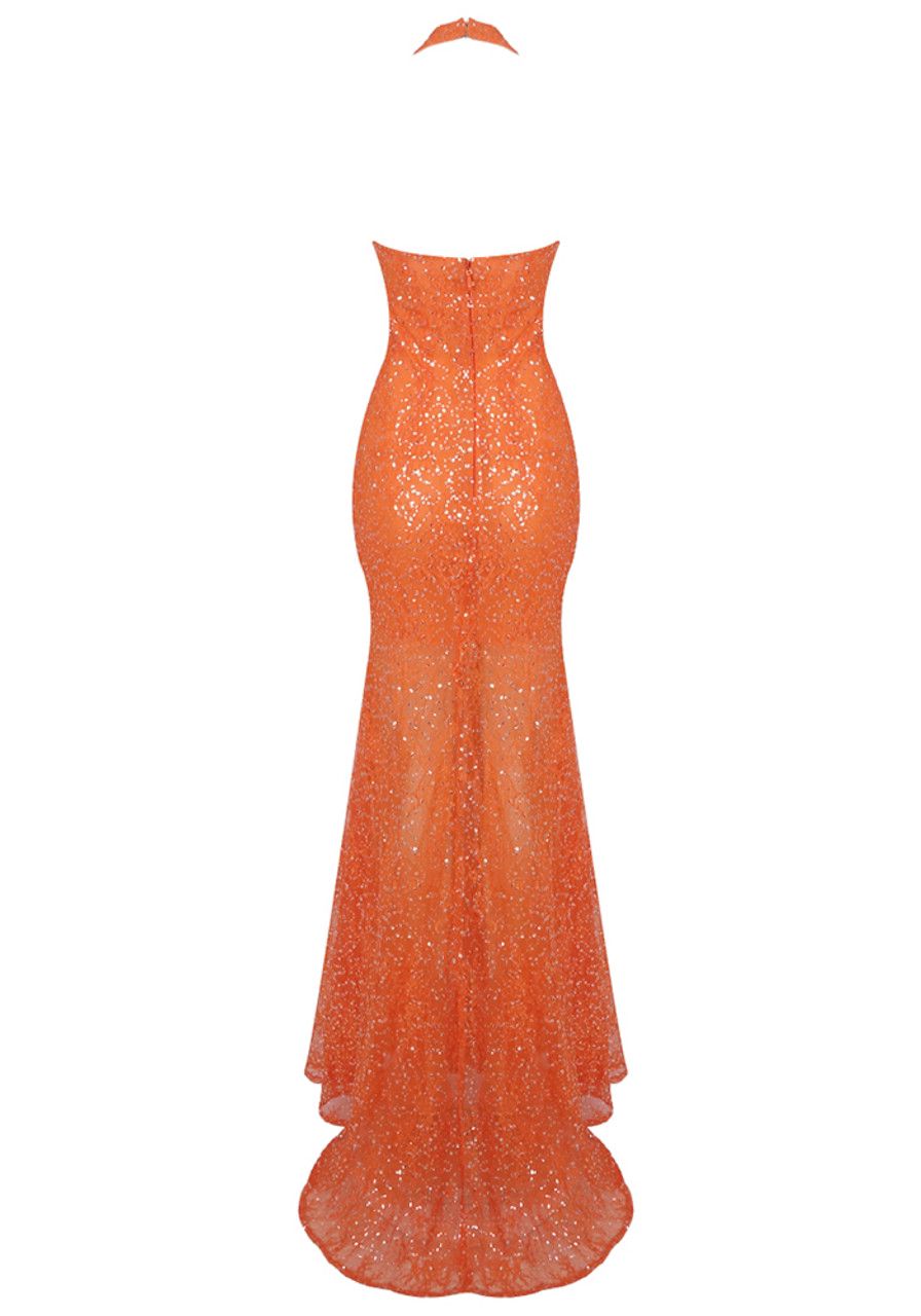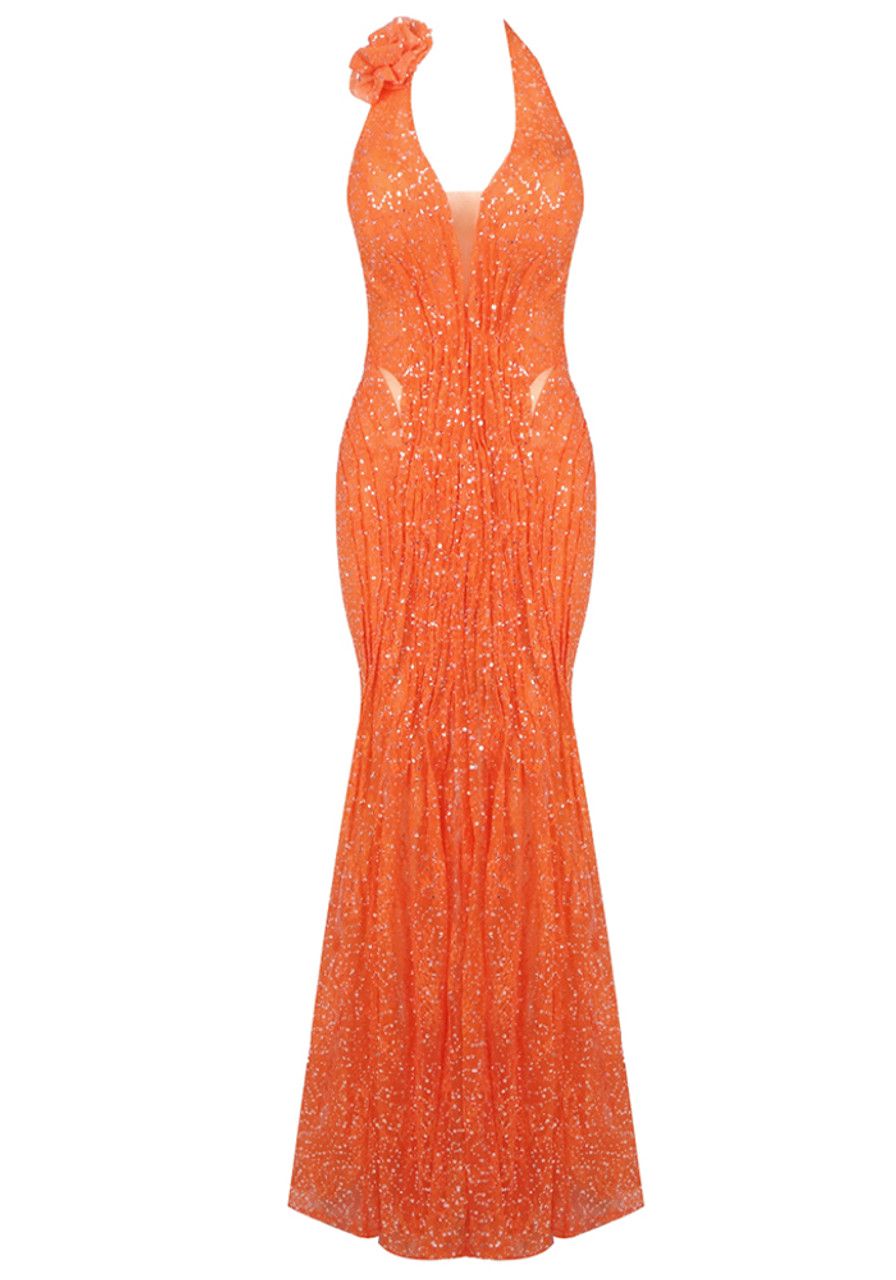 Aplicațiile strălucitoare sunt dispuse într-un model rafinat, adăugând o textură prețioasă și o notă de opulență fără a deveni copleșitoare.
