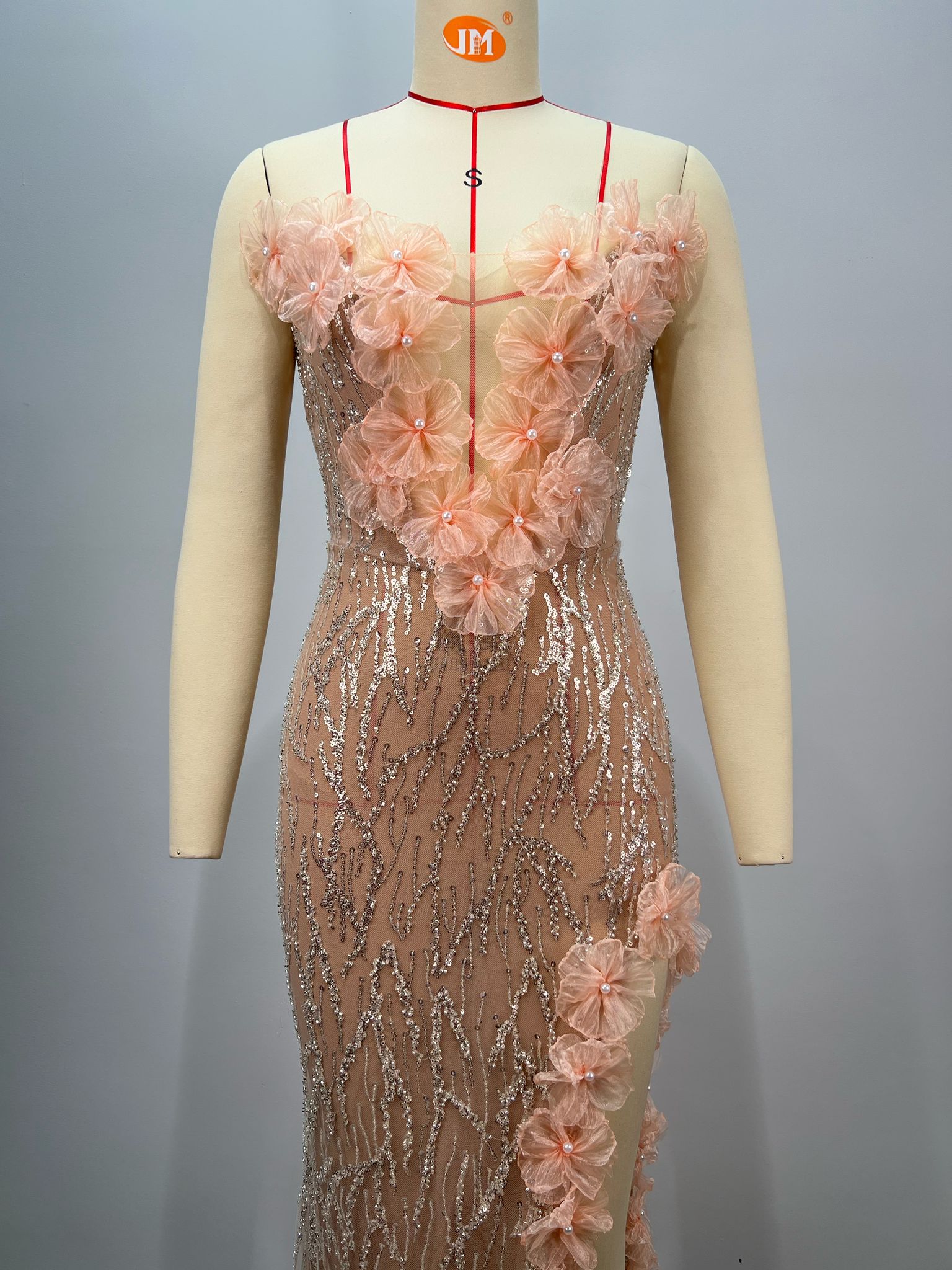 - Detaliu deosebit: Decorațiunile florale adaugă un plus de feminitate și rafinament, accentuând frumusețea naturală a oricărei femei.