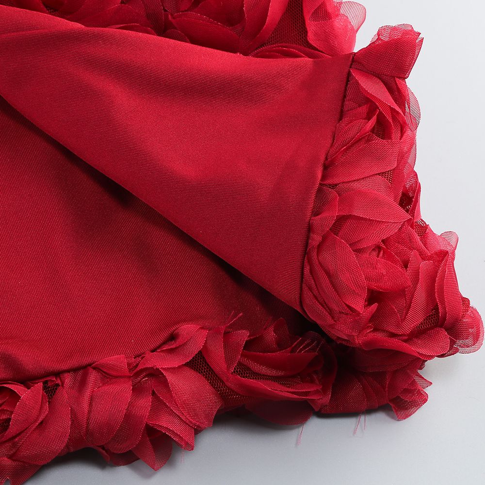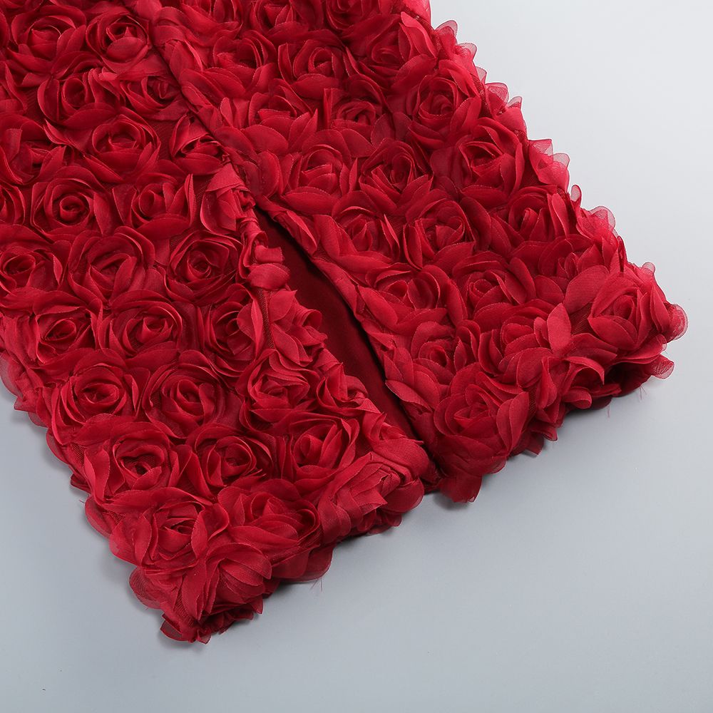 - Detaliu deosebit: Corsetul mulat evidențiază talia și contribuie la o siluetă bine definită, în timp ce partea inferioară a rochiei este decorată cu aplicații florale tridimensionale, reprezentând un adevărat omagiu adus detaliilor artizanale.