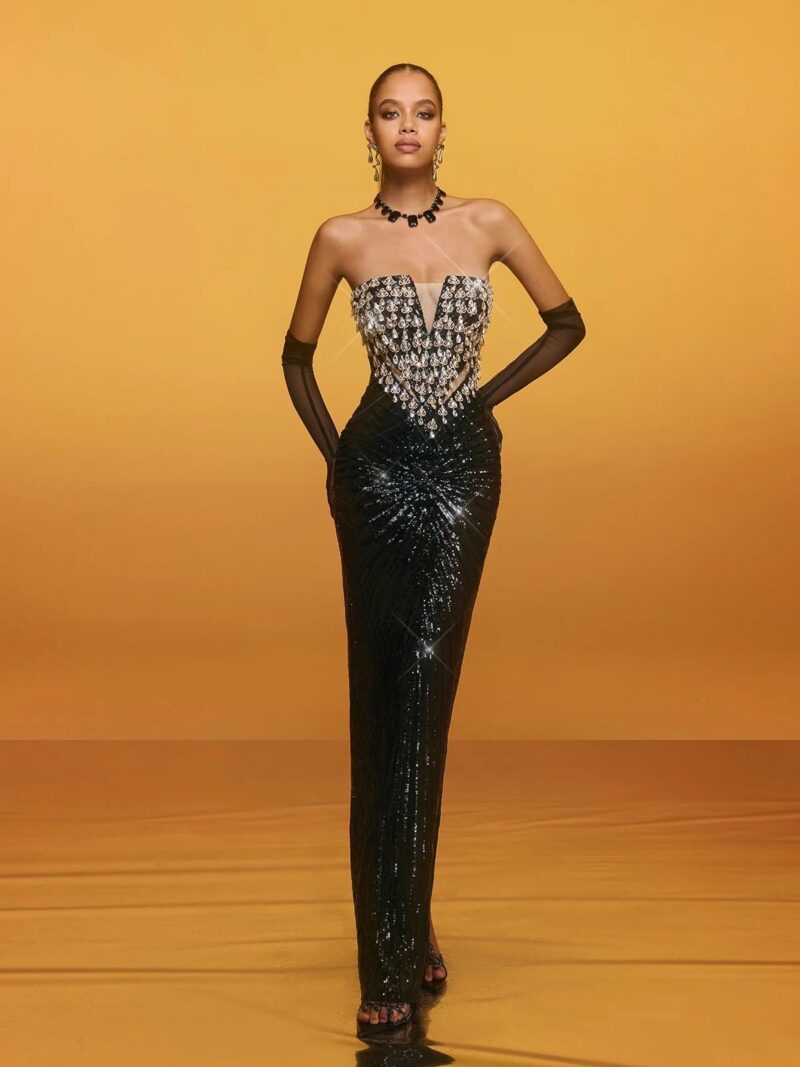 Rochia este ideală pentru evenimente deosebite, cum ar fi gale, nunți sau petreceri de lux, oferind purtătoarei un aer de mister și rafinament.