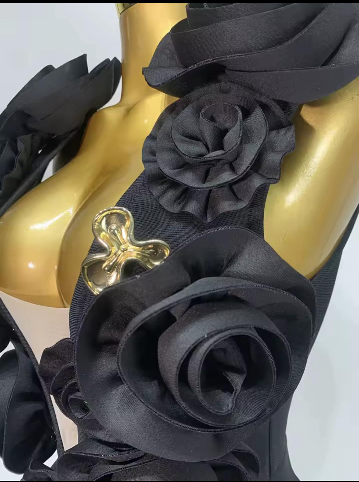 - Detaliu deosebit: Fusta bufantă și decorațiunile florale adaugă un plus de feminitate și rafinament, accentuând frumusețea naturală a oricărei femei.
